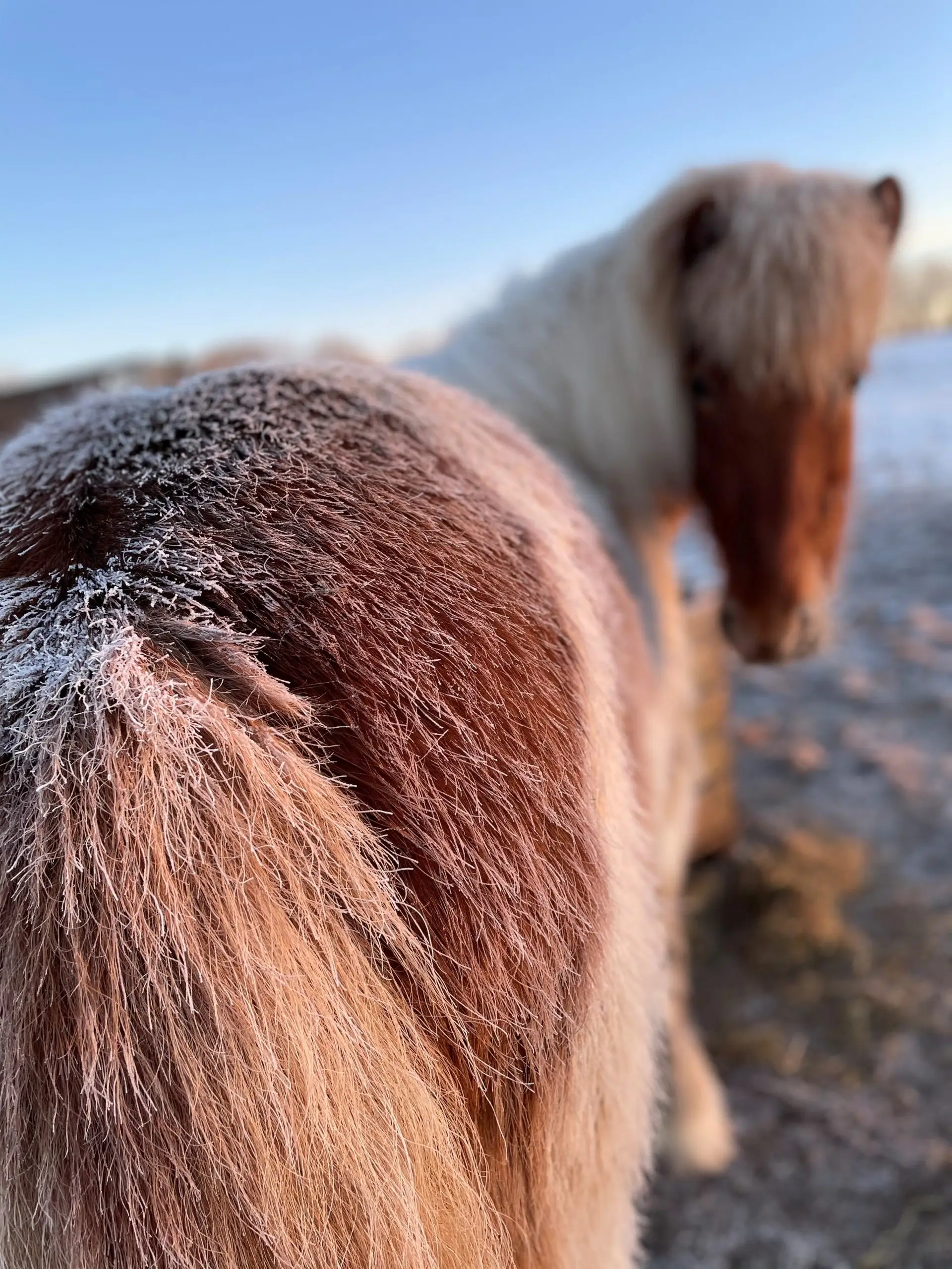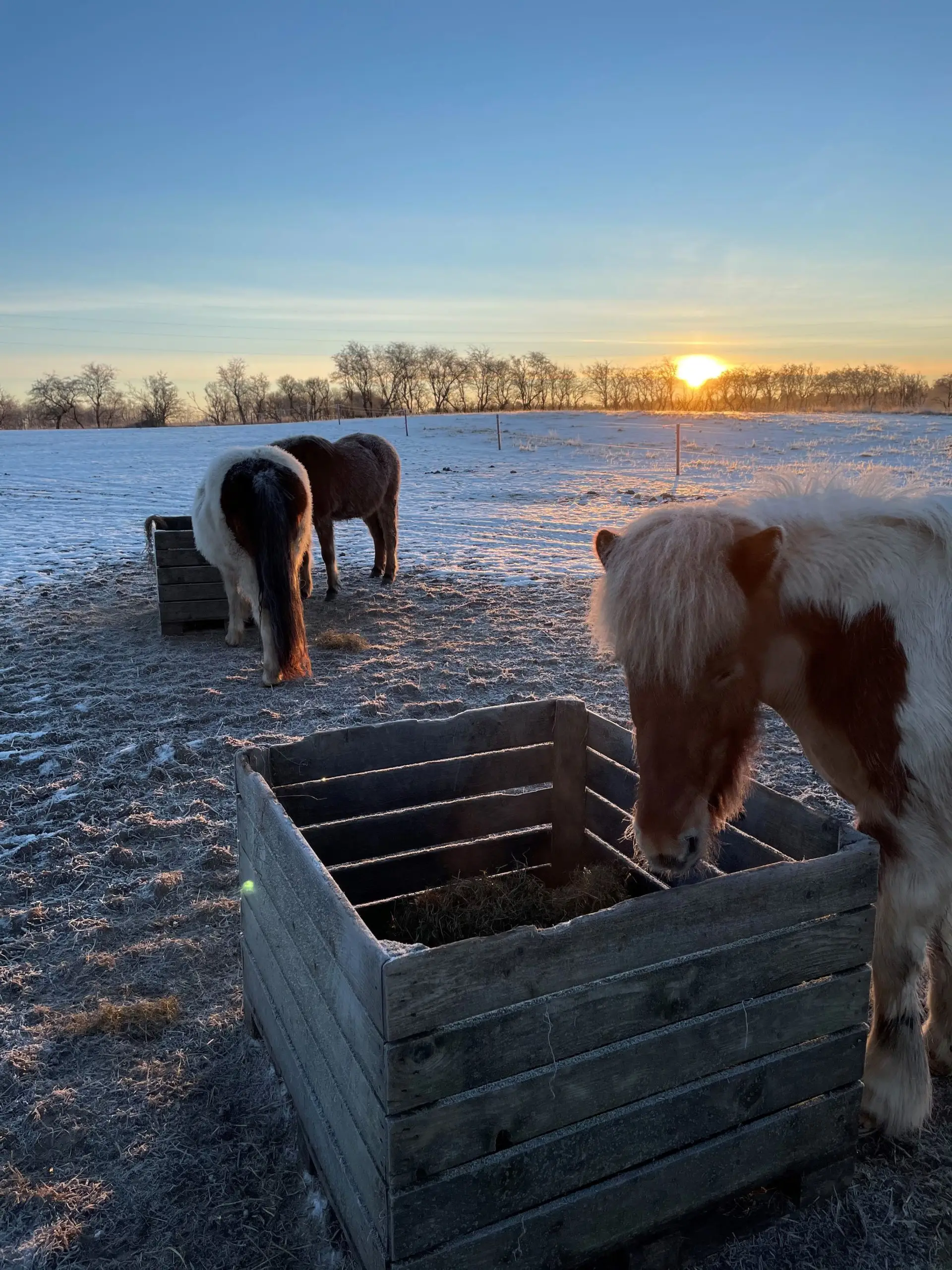 Det er derfor med ro i maven at vi kan se til mens snestormen raser over os og vide at vores heste nok skal klare sig godt igennem. Løsdriftene får lige en ekstra omgang halm, så de kan ligge tørt, men ofte står de bare udenfor med rumpen mod vinden og rider stormen af. Det er mest om sommeren de søger ind, på grund af insekter og varme - det er faktisk lidt sjovt. De er skabt til det kolde vejr og har det godt med det. De er ekstremt hårdføre og det ønsker vi at de skal blive ved med at være, hvilket kun er muligt med foder af god kvalitet.