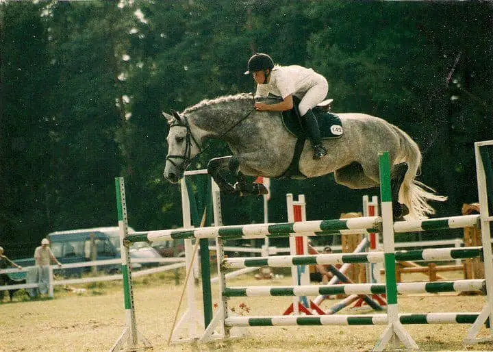 Min karriere som springrytter tog rigtig fat, da jeg byttede Jesper med min kusines tossede polske xx/DV. En lille hest på 152 cm, men som havde et hjerte af guld og under kyndig vejledning af springrytter Lone Kromann, så fik vi redet en del LA’ere (120 cm) og vist også nogle få MB’ere (130 cm).