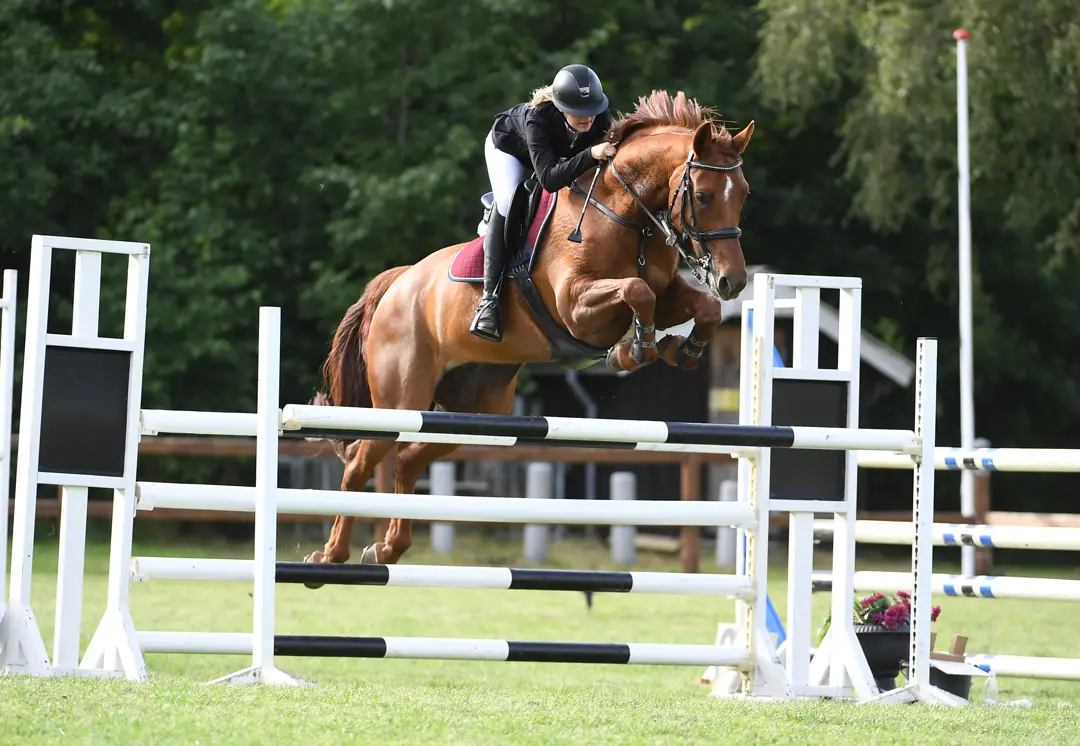 I 2020 fik jeg min første store hest. Dortheasmindes Foxy Lady (i daglig tale, Foxy) er en skøn stor rød hoppe. Hun er B hest i dressur og A hest i springning. Det kræver en del tilvænning, at skulle ride en stor hest rundt på banen, når man er vant til ponyerne + at højden på springene jo også ændrer sig en del. Det skulle jeg lige vænne mig til.